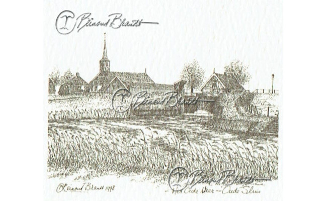 Deze tekening is ingelijst verkrijgbaar met glas en klemmen of in een bruine, zwarte of wortelnoot fineren lijst.