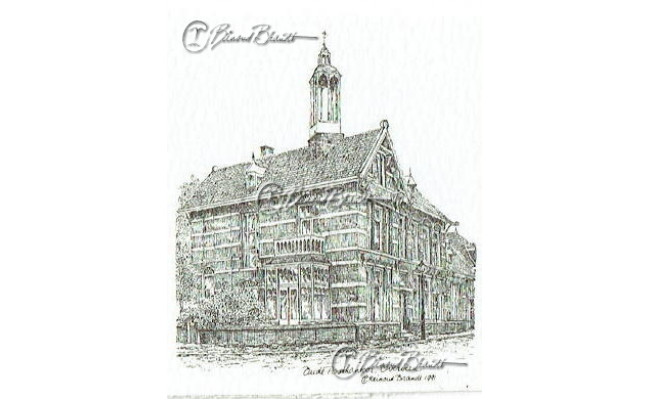 Deze tekening is ingelijst verkrijgbaar met glas en klemmen of in een bruine, zwarte of wortelnoot fineren lijst.