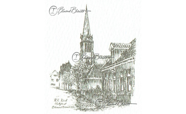 Deze tekening is ingelijst verkrijgbaar met glas en klemmen of in een bruine, zwarte of wortelnoot fineren lijst.
