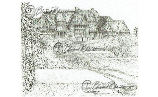 Deze tekening is ingelijst verkrijgbaar met glas en klemmen of in een bruine, zwarte of wortelnoot fineren lijst.
