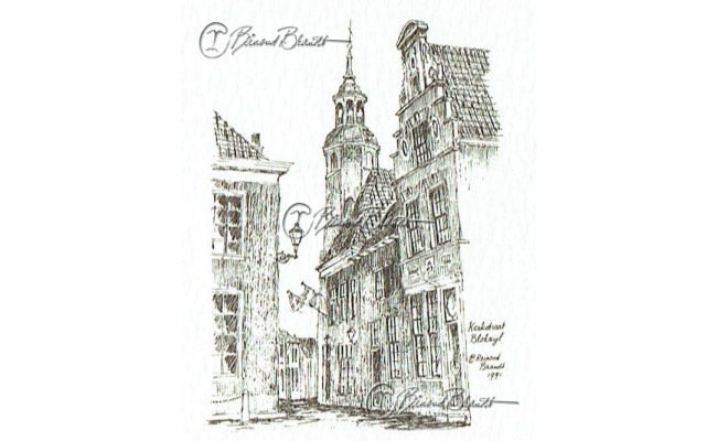 Deze miniatuur pentekening wordt gemonteerd in een uitgestanst passe-partout van 10x10 cm en wordt geleverd in een lijst naar keuze.