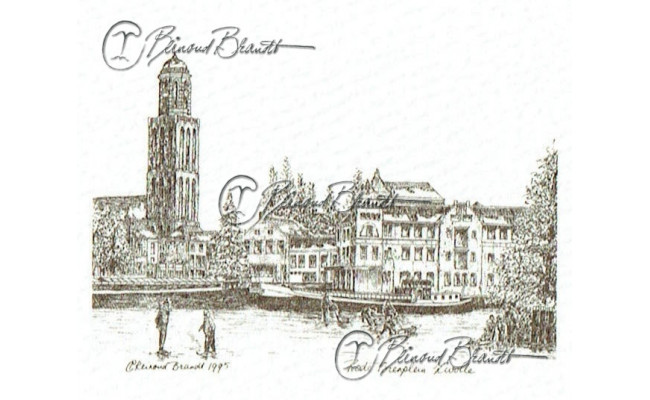 Deze miniatuur pentekening wordt gemonteerd in een uitgestanst passe-partout van 10x10 cm en wordt geleverd in een lijst naar keuze.
