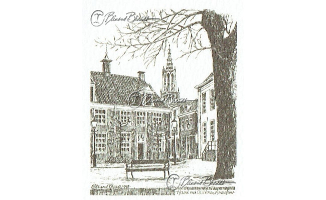 Deze miniatuur pentekening wordt gemonteerd in een uitgestanst passe-partout van 10x10 cm en wordt geleverd in een lijst naar keuze.