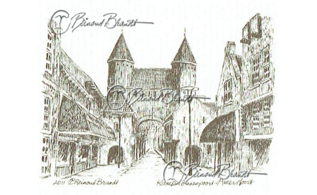 Deze tekening is ingelijst verkrijgbaar met glas en klemmen of in een bruine, zwarte of wortelnoot fineren lijst.