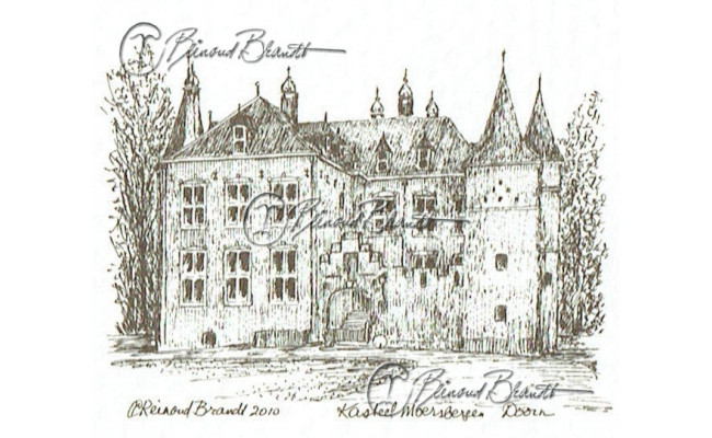 Deze tekening is ingelijst verkrijgbaar met glas en klemmen of in een bruine, zwarte of wortelnoot fineren lijst.