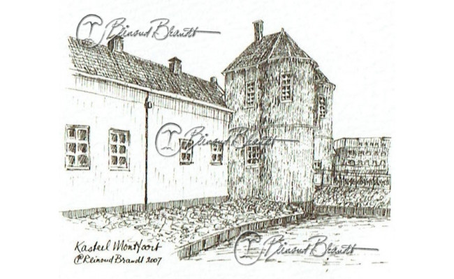 Deze tekening is ingelijst verkrijgbaar met glas en klemmen of in een bruine, zwarte of wortelnoot fineren lijst.