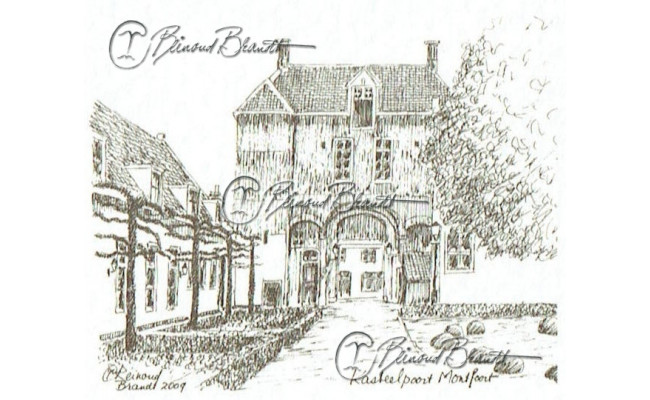 Deze miniatuur pentekening wordt gemonteerd in een uitgestanst passe-partout van 10x10 cm en wordt geleverd in een lijst naar keuze.