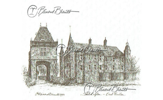 Deze miniatuur pentekening wordt gemonteerd in een uitgestanst passe-partout van 10x10 cm en wordt geleverd in een lijst naar keuze.