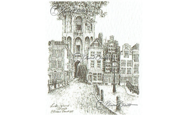 Deze miniatuur pentekening wordt gemonteerd in een uitgestanst passe-partout van 10x10 cm en wordt geleverd in een lijst naar keuze.