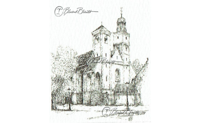 Deze miniatuur pentekening wordt gemonteerd in een uitgestanst passe-partout van 10x10 cm en wordt geleverd in een lijst naar keuze.