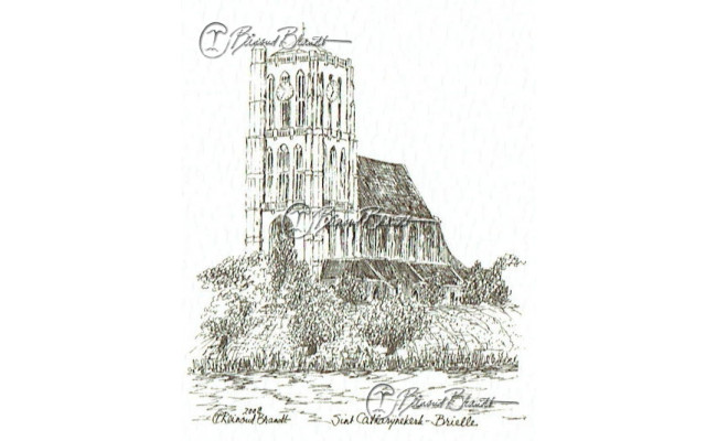 Deze miniatuur pentekening wordt gemonteerd in een uitgestanst passe-partout van 10x10 cm en wordt geleverd in een lijst naar keuze.