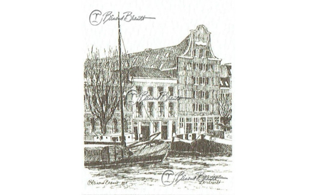 Deze miniatuur pentekening wordt gemonteerd in een uitgestanst passe-partout van 10x10 cm en wordt geleverd in een lijst naar keuze.