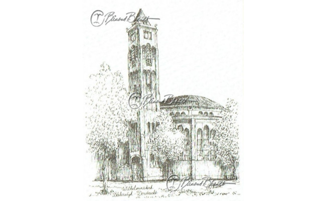 Deze tekening is ingelijst verkrijgbaar met glas en klemmen of in een bruine, zwarte of wortelnoot fineren lijst.