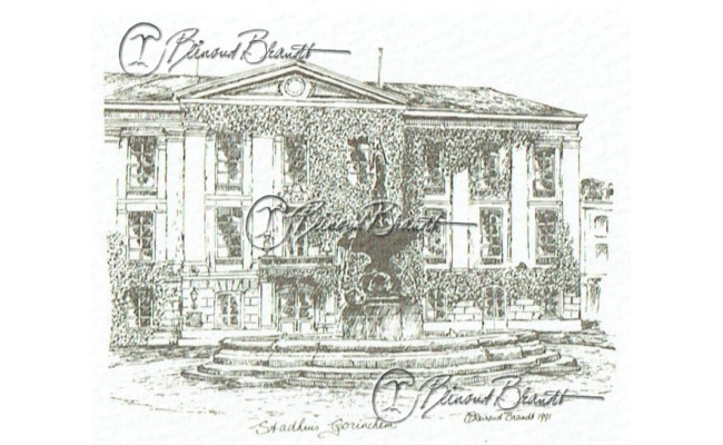 Deze miniatuur pentekening wordt gemonteerd in een uitgestanst passe-partout van 10x10 cm en wordt geleverd in een lijst naar keuze.