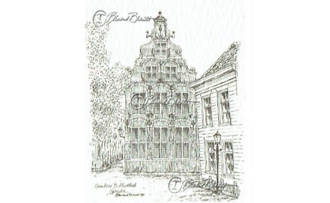 Deze miniatuur pentekening wordt gemonteerd in een uitgestanst passe-partout van 10x10 cm en wordt geleverd in een lijst naar keuze.