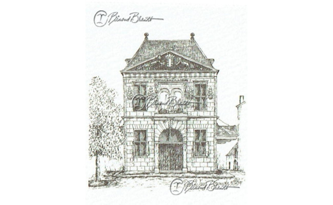Deze miniatuur pentekening wordt gemonteerd in een uitgestanst passe-partout van 10x10 cm en wordt geleverd in een lijst naar keuze.