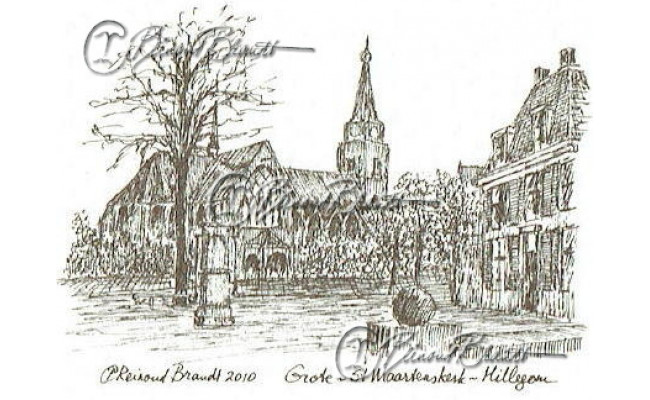 Deze tekening is ingelijst verkrijgbaar met glas en klemmen of in een bruine, zwarte of wortelnoot fineren lijst.