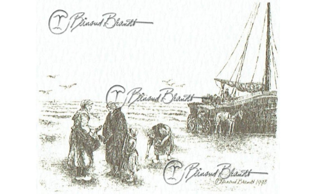 Deze tekening is ingelijst verkrijgbaar met glas en klemmen of in een bruine, zwarte of wortelnoot fineren lijst.