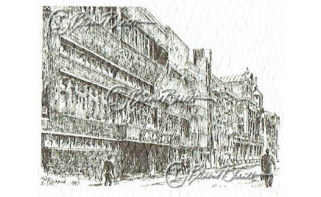 Deze tekening is ingelijst verkrijgbaar met glas en klemmen of in een bruine, zwarte of wortelnoot fineren lijst.