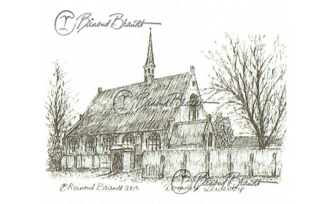 Deze tekening is ingelijst verkrijgbaar met glas en klemmen of in een bruine, zwarte of wortelnoot fineren lijst.