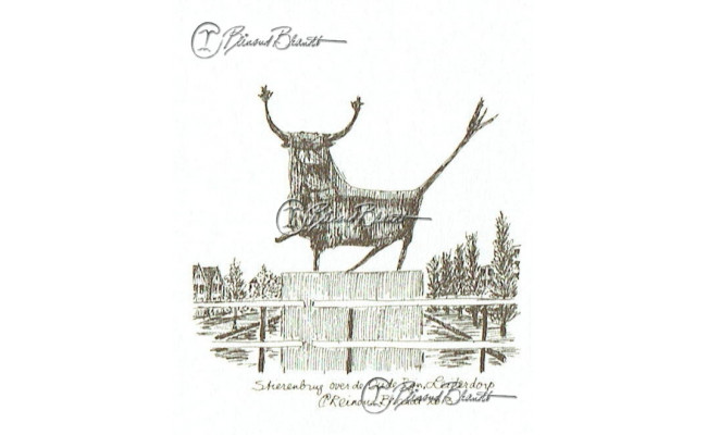 Deze miniatuur pentekening wordt gemonteerd in een uitgestanst passe-partout van 10x10 cm en wordt geleverd in een lijst naar keuze.