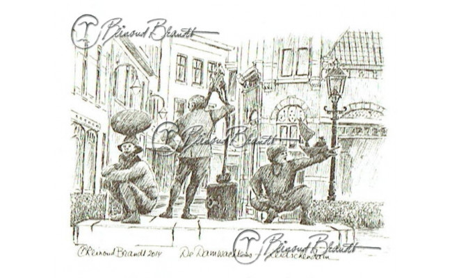 Deze tekening is ingelijst verkrijgbaar met glas en klemmen of in een bruine, zwarte of wortelnoot fineren lijst.