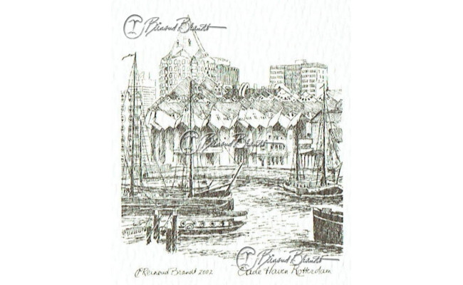Deze miniatuur pentekening wordt gemonteerd in een uitgestanst passe-partout van 10x10 cm en wordt geleverd in een lijst naar keuze.
