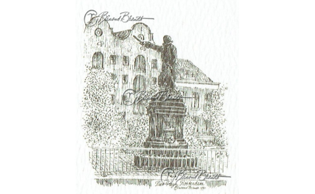Deze miniatuur pentekening wordt gemonteerd in een uitgestanst passe-partout van 10x10 cm en wordt geleverd in een lijst naar keuze.
