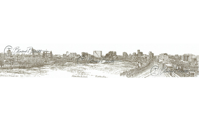 Deze panoramatekening wordt geleverd in een uitgesneden passe-partout van 10x25 cm, in een lijst naar keuze.