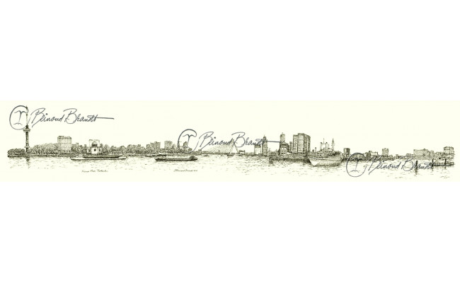 Deze panoramatekening wordt geleverd in een uitgesneden passe-partout van 10x25 cm, in een lijst naar keuze.