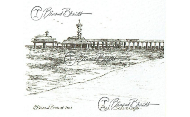 Deze miniatuur pentekening wordt gemonteerd in een uitgestanst passe-partout van 10x10 cm en wordt geleverd in een lijst naar keuze.