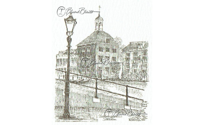 Deze miniatuur pentekening wordt gemonteerd in een uitgestanst passe-partout van 10x10 cm en wordt geleverd in een lijst naar keuze.