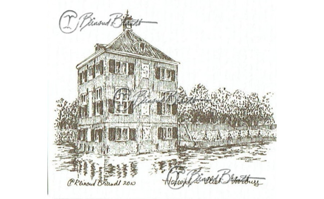Deze miniatuur pentekening wordt gemonteerd in een uitgestanst passe-partout van 10x10 cm en wordt geleverd in een lijst naar keuze.