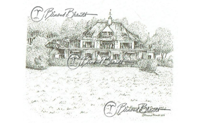 Deze tekening is ingelijst verkrijgbaar met glas en klemmen of in een bruine, zwarte of wortelnoot fineren lijst.