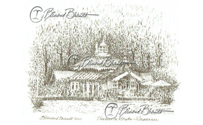 Deze miniatuur pentekening wordt gemonteerd in een uitgestanst passe-partout van 10x10 cm en wordt geleverd in een lijst naar keuze.