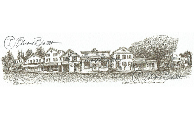Deze panoramatekening wordt geleverd in een uitgesneden passe-partout van 10x25 cm, in een lijst naar keuze.