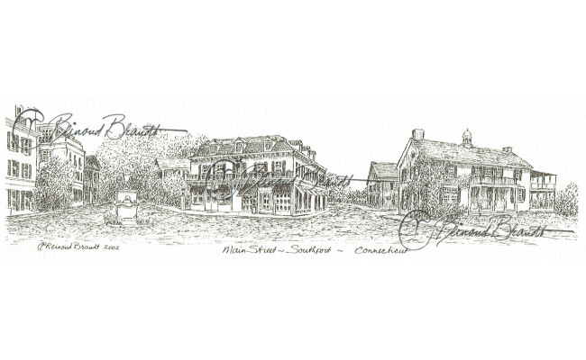 Deze panoramatekening wordt geleverd in een uitgesneden passe-partout van 10x25 cm, in een lijst naar keuze.