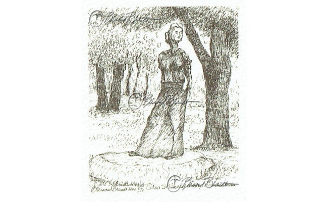 Deze tekening is ingelijst verkrijgbaar met glas en klemmen of in een bruine, zwarte of wortelnoot fineren lijst.