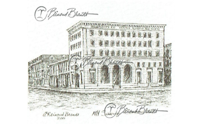 Deze tekening is ingelijst verkrijgbaar met glas en klemmen of in een bruine, zwarte of wortelnoot fineren lijst.