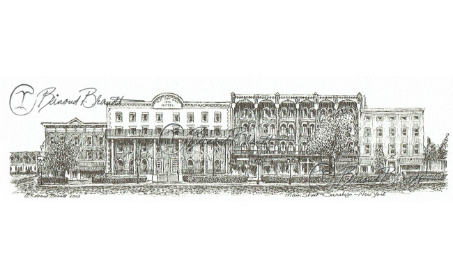 Deze panoramatekening wordt geleverd in een uitgesneden passe-partout van 10x25 cm, in een lijst naar keuze.