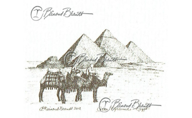 Deze tekening is ingelijst verkrijgbaar met glas en klemmen of in een bruine, zwarte of wortelnoot fineren lijst.